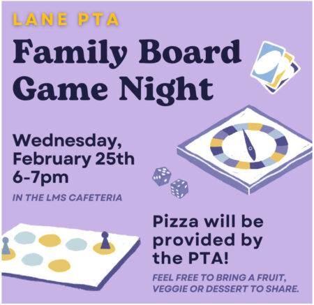 FEBRUARY 25 Join us for Family Game Night on Tuesday, February 25, from 6:00–7:00 PM in the Lane Cafeteria! We’ll have Bingo plus a variety…